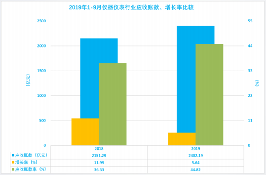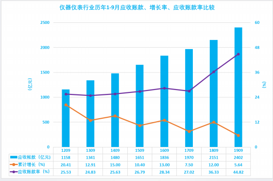 2.9 儀器儀表行業(yè)歷年1-9月應(yīng)收賬款、增長率、應(yīng)收賬款率比較