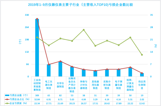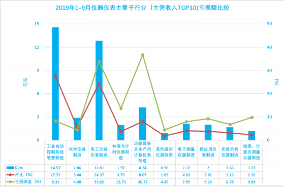 1.19 2019年1-9月儀器儀表主要子行業(yè)(主營收入TOP10)虧損額比較
