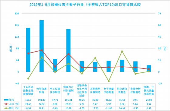1.20 2019年1-9月儀器儀表主要子行業(yè)(主營收入TOP10)出口交貨值比較
