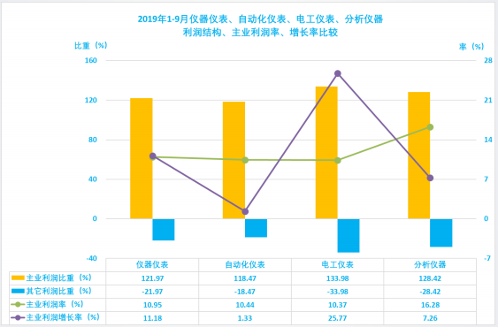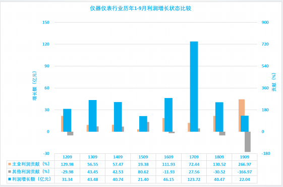 1.3.1 儀器儀表行業(yè)2019年1-9月主業(yè)利潤波動分析