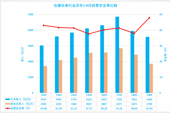 2.8 儀器儀表行業(yè)歷年1-9月經(jīng)營安全率比較