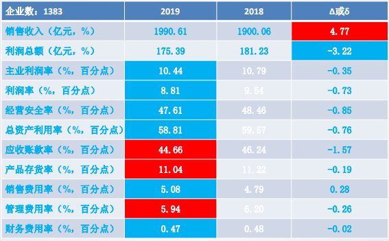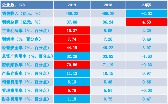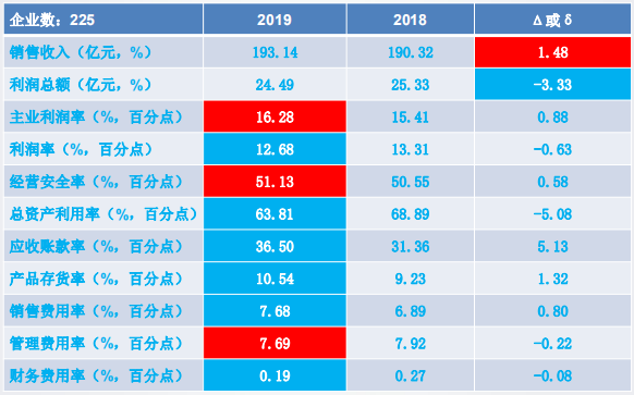 11個經(jīng)濟(jì)運(yùn)行指標(biāo)中:銷售收入、利潤總額、主業(yè)利潤率、經(jīng)營安全率、應(yīng)收賬款率、產(chǎn)品存貨率和管理費(fèi)用率好于上年同期;其余4個指標(biāo)差于上年同期。