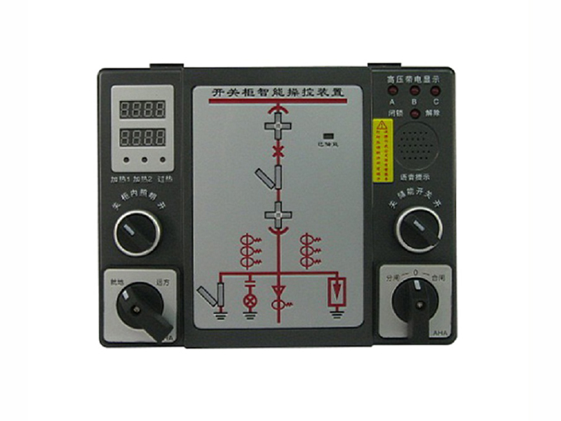 智能操控裝置具有一次回路模擬圖及開關狀態(tài)指示,高壓帶電顯示,自動溫濕度控制,人體感應自動照明,語音提示,電參數(shù)測量及RS485通訊接口等眾多功能,集操作、顯示于一體。